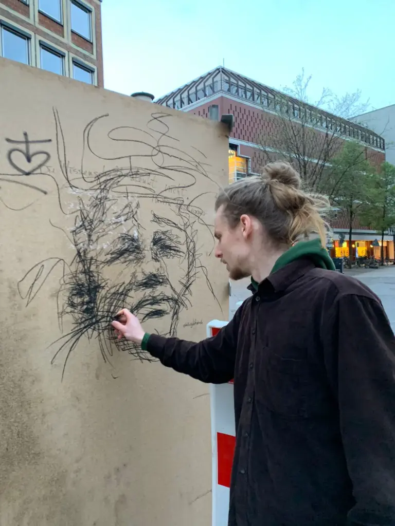 Derzeit arbeitet Johannes daran, seine Kunst auch tragbar zu machen – etwa in Form von T-Shirts. Zugleich entstehen Projekte, die existenzielle Tiefe mit lebendiger Farbigkeit und pflanzlichen Motiven verbinden – fast trotzig, gegenläufig zu seiner sonst melancholischen Bildsprache.